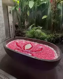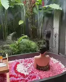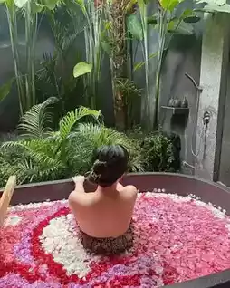 ▫️ Sunset is recommended! Soaking in the petal bath while watching the sunset over the Ayung River is super romantic