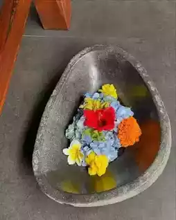 “When volcanic stones meet frangipani, ancient wisdom and modern aesthetics resonate here.”