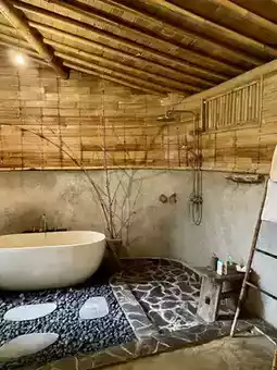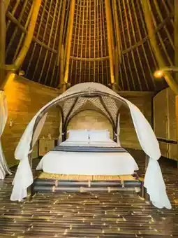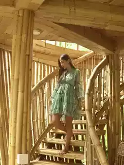 There are more and more bamboo houses in Bali. Just when I thought every design was pretty much the same, I found this two-story Amarta Pesagi Retreat that incorporates the treehouse concept. I was deeply attracted by its unique appearance. It’s even more romantic when the lights are on for aerial shots after sunset 😍 I highly recommend everyone to take photos standing on the lower-level terrace. Also, there is a private pool downstairs surrounded by forest 🫶🏻 This bamboo house is in a relatively remote location, right next to local residents’ homes, very peaceful. But it’s precisely for this reason that guests can fully immerse themselves in nature and enjoy the most authentic nearby terraced field views!