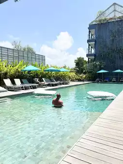 Located between Canggu and Seminyak, close to the beach, with a kitchen, two pools, a gym, and laundry facilities—all fully equipped 😊