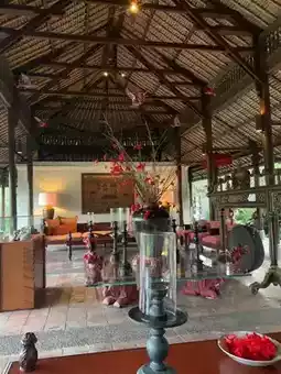 🛖The hotel maintains an elegant Balinese style that blends perfectly with the natural environment. Upon entering, the front desk reception is warm and welcoming, instantly helping you relax. 💁♂️Each villa is hidden within lush gardens, fully equipped with luxurious amenities including an infinity pool, bar, and spa center. What's most heartwarming is the hotel's complimentary services such as free shuttle service to town, afternoon tea, and laundry service, demonstrating their attentive care.