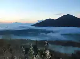 As we climbed higher, the sky slowly lightened with shades of purple and orange. Reaching the summit just before dawn, we found the perfect spot to rest. Then, the sun began to rise, casting golden light over the caldera, Lake Batur, and even Mount Agung in the distance. It was breathtaking—pure magic that made every step worthwhile.