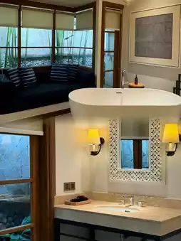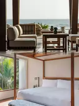 Starting at 158㎡, the cliffside pool villas are like transparent pearls lifted by the Indian Ocean! Open the window to the emerald wave crests of Canggu Beach, turn around and fall into a Zen space carved from volcanic rock 🌅💎. The smart system plays traditional Balinese gamelan music, the bedding is woven from 800-thread organic cotton with the tactile sensation of flowing waves, and even the bathrobes are embroidered with surfer totems 🛁🏄♀️. The highlight is the cliffside infinity pool—lie in the volcanic rock massage pool, look up to see the starry sky falling into the sea, look down to see surfers chasing the sun. This insomniac actually fell into a baby’s sleep in the wave sound spa (I won’t say who secretly checked my smart band’s deep sleep data) 💤🌌