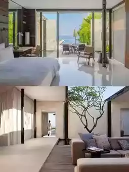 There are single-bedroom villas perfect for couples👫 and honeymooners, as well as two-bedroom villas suitable for families👨👩👦, all equipped with outdoor terraces, private pools, indoor and outdoor showers, yoga mats, custom beach amenities, luxurious bathtubs, and more.