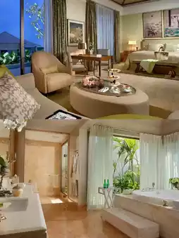 The villa rooms are spacious with clean and tidy bedding. They clean twice a day. The small pool is also very clean. There is a round bathtub indoors where you can ask the staff in advance to prepare a bubble bath. The staff are enthusiastic and patient, with each villa equipped with two butlers. The hotel’s spa is quite good and well-known on the island. Overall, the service level is outstanding among established hotels. Perfect for families with kids!