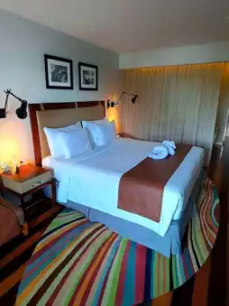 The hotel's design is unique and charming, blending nautical-themed decor with modern comfort. Our room was spacious, clean, and well-equipped, with a comfortable bed and a balcony that offered beautiful sunset view over the beach.