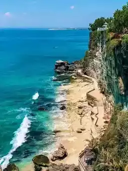Secluded beach accessed by a cliffside inclinator