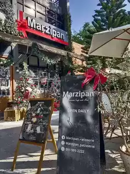 • White jade checkerboard pool (Photo 8) using parasols as chess pieces to set a light and shadow endgame