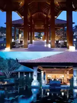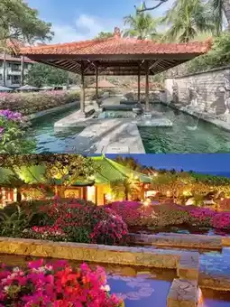 Hyatt Bali Hotel is a top-tier luxury resort located along the beach in Nusa Dua, just a 15-minute drive from Bali International Airport. The hotel is adjacent to ancient temples and cultural attractions. Guest rooms are all over 49 square meters and come with welcome gifts such as mineral water, fresh fruit, and flowers. Room amenities include a chaise lounge, a private balcony with garden or lagoon views, internet access, bedding, marble bathrooms with shower systems, bathrobes, and slippers. Hyatt Bali features approximately 3,400 square meters of meeting space, including a conference center with 25 meeting rooms, two boardrooms, and a grand ballroom seating 1,420. All meeting rooms are equipped with ceiling floodlights, fixed pull-down screens, whiteboards, and sound systems, along with standard audiovisual equipment. The hotel also offers a business center with secretarial services. The Bay Club Fitness and Health Center provides a gym, squash and tennis courts, massage services, sauna, whirlpool spa, plunge pool, and five outdoor swimming pools. Families can enjoy the Camp Nusa kids’ center, and the hotel also offers a beauty salon and a tour desk. Guests can savor international cuisine at Garden Cafe, traditional Balinese dishes at Watercourt Restaurant, and Japanese cuisine at Nampuu. Other options include Italian dishes at Salsa Verde and Balinese food and handicrafts at Pasar Senggol Night Market. The three hotel bars include Salsa Bar serving cocktails, Pesona Lounge with live music and cocktails, and the Poolside Bar offering tropical drinks.