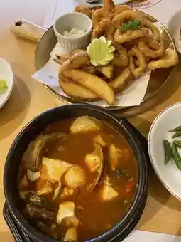 I ordered soft tofu stew, cold noodles, spicy pork, and calamari, but the taste was average for the price.