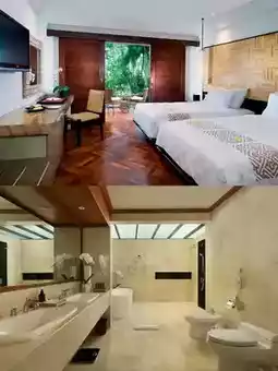Surroundings: The resort covers 6.8 hectares with tropical garden views, just a 4-minute walk to Legian Beach, about an 11-minute drive to Kuta Beach, and approximately 2.6 km to Seminyak Beach.