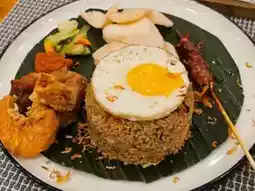 I ordered coconut, cassava fries, and nasi goreng. The coconut was very refreshing and fragrant. The cassava fries were savory, topped with powdered cheese, giving it a rich flavor that was absolutely delicious! Also, the Indonesian signature dish nasi goreng was served with various fried items and satay. The rice in the nasi goreng was fluffy, and after one big spoonful, I couldn’t help but applaud!