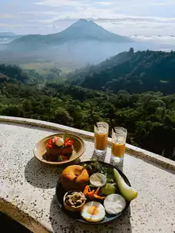 Paperhills Café at Kintamani serves more than just food—it serves views. Imagine enjoying your breakfast while the morning mist wraps around Mount Batur. Peaceful, scenic, and seriously unforgettable. A dreamy spot to start your day in Bali!