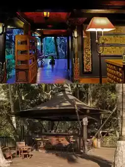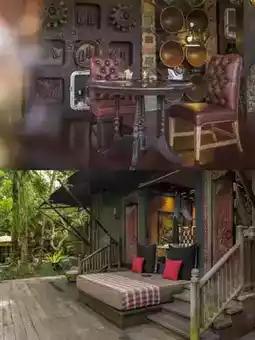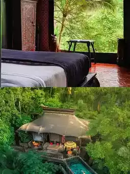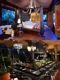 🏕️ The hotel is located deep in the tropical rainforest, featuring all vintage tent-style villas, full of ceremonial atmosphere! Upon arrival at the entrance, there is a local traditional welcome ceremony (p8): incense burning, rice grain sticking, holy water sprinkling, and tea offering, instantly immersing you in the jungle tribe vibe.