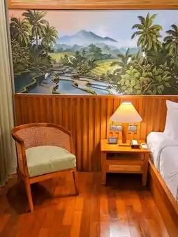 The suites at Bali Ubud Hotel Adiwana Unagi Suite are spacious and decorated with an interior that harmonizes traditional Balinese and modern styles. The rooms are imbued with paintings and woodcraft by Balinese artisans, and the marble floors and high-quality wooden flooring create a calm atmosphere.