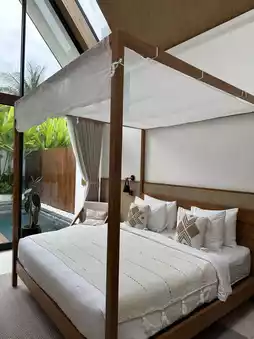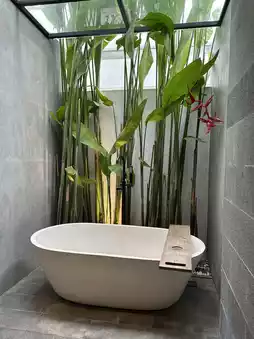 It’s tucked deep inside Ubud, away from the town and city bustle, giving it a peaceful, secluded vibe. The villa only has four rooms, which makes it feel exclusive and quiet. The bed was very comfortable, and I absolutely loved the modern, trendy design. The swimming pool was clean, and the bathtub was another highlight — with strong water pressure and hot water, no worries at all about it being too slow or not warm enough.