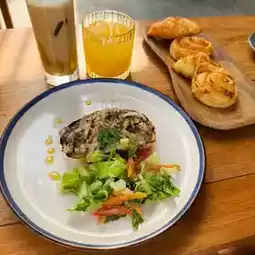 For breakfast, you can choose between local dishes and Western food, leaving you fully satisfied from the morning🌞 I had the mushroom cream croissant.