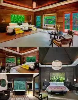 - Space: Starting at 100㎡, standalone villas feature wooden structures, rattan decorations, and floor-to-ceiling glass walls that let the rainforest greenery flood the room; a private pool tucked in a corner of the courtyard lets you swim and then lounge on the sofa, watching banana leaves sway through the glass, like living in a rainforest treehouse.