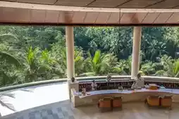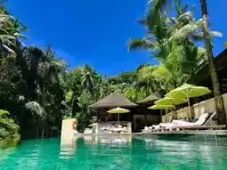 Enjoy endless luxury here! Private pools, teak furniture, and leather sofas in the villas make you feel like royalty. The resort offers various special activities, such as sleep courses and spa treatments, to help you fully relax. ๐ฝ๏ธ Dining services let you savor authentic Balinese flavors, from Balinese roasted suckling pig to Japanese breakfast, each meal unforgettable. The main pool is a highlight, overlooking the river while offering tranquility and comfort. For a perfect lunch experience, be sure to try the riverside cafรฉ, where the chefs are top-notch! ๐จโ๐ณ