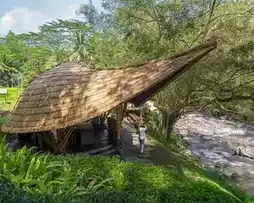 Nestled in the jungle, Four Seasons Resort Bali at Ubud offers serene mountain views. This artistic masterpiece, designed by a 27-year-old designer, is a stunning wooden lotus water pavilion perfectly blending with the surrounding natural environment. ๐ฃโโ๏ธ Located near the Ayung River, you can enjoy rafting adventures. The resortโs design is unique, surrounded by vast palm trees, making you feel like you are in the heart of a Southeast Asian forest, overlooking rice fields and streams. ๐พ