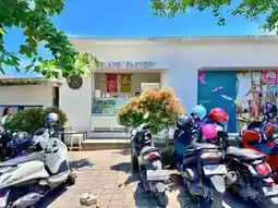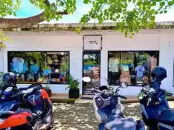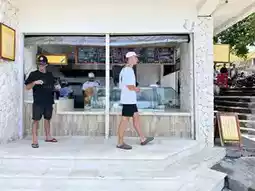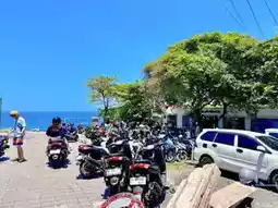 Near Bali’s Suluban Beach, popular among surfers, there’s a small alley filled with shops. Before heading down, this charming alley offers a variety of food options like sandwiches, restaurants, and coffee, as well as shopping stores for surfers, making it a great place to buy water sports gear.