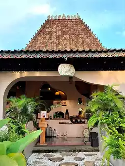 Cerita Manisan in Ubud is a cozy restaurant set in a traditional Javanese joglo, surrounded by peaceful rice fields. The vibe is calm and nostalgic, with soft music playing in the background.