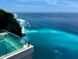 Perched on the cliffs of Uluwatu, Bali, oneeighty° Dayclub is a dreamy club featuring a "sky pool" and unbeatable ocean views, part of the luxury resort The Edge. The highlight here is a cantilevered glass pool that seems to float 100 meters above the sea cliffs, with a transparent floor where you can see the crashing waves below—definitely not for the faint-hearted!