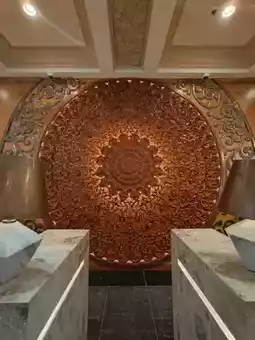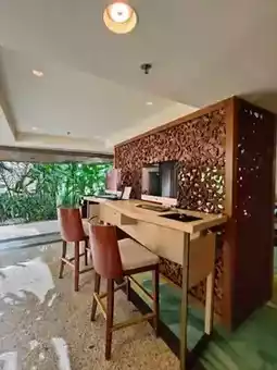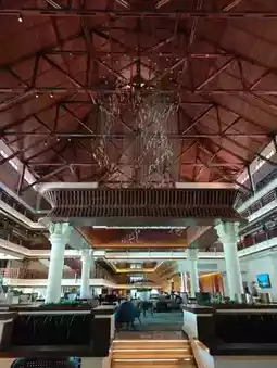 🖼️ What truly caught my eye were the intricate wall crafts—each piece echoing Balinese heritage with refined detail. The ceiling, adorned with a constellation of chandeliers, added a touch of opulence, casting warm light across the polished floors and sculpted décor.