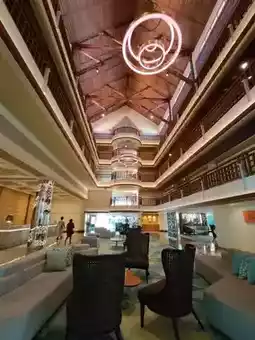 🏛️ The lobby itself is monumental, with soaring ceilings and a layout that invites both movement and pause. There’s a graceful flow to the space, with multiple seating areas thoughtfully arranged for guests to relax, converse, or simply take in the surroundings.