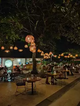 Live music pulses softly through the night, the perfect companion to the waves murmuring nearby. The band plays with just enough swing to keep your feet tapping, but never overwhelms the serenity of the setting.