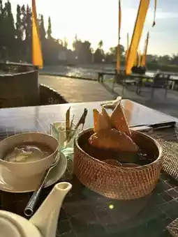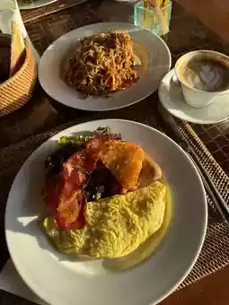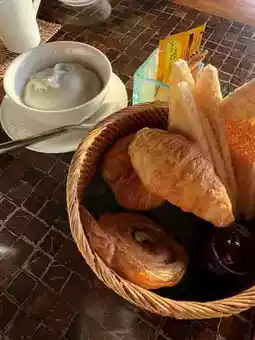 After landing, I was treated to a lovely breakfast at the resort — freshly baked pastries, tropical fruits, and a cappuccino that tasted better under the sky I’d just floated through.