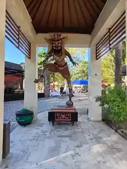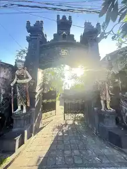 As you navigate its palm-lined roads, towering gateposts and ornamental carvings emerge like markers of another time. These temple-lookalike features—split gates (candi bentar), guardian statues, and intricate reliefs—aren’t part of a singular temple complex, but are woven into hotels, roundabouts, even shopping centers. It’s an homage to Hinduism that saturates the everyday landscape with reverence and beauty.
