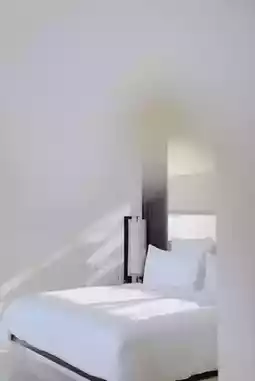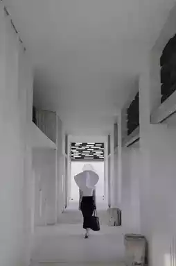 Pure white minimalist architecture paired with wooden elements, with a large open-air space in close contact with nature🎑