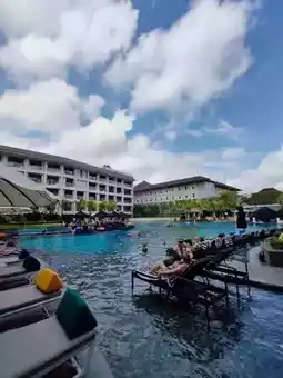 At the heart of The Legian Stone Hotel lies a serene centerpiece: the dual-blue pool that seems to echo the very sky above. Framed by elegant stone architecture and lush tropical greenery, the pool stretches like a liquid mirror, capturing every shade of the Balinese skyâfrom pale morning hues to the deep sapphire of midday.