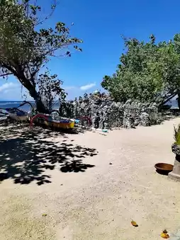 There aren’t many people here, and the atmosphere is very relaxed. It feels especially nice in the morning when the sea is super calm, and you can even see a beautiful sunrise.
