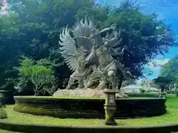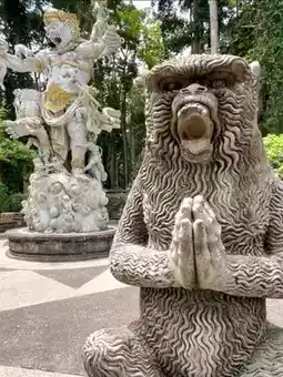 Sangeh Monkey Forest is a quiet, shady forest in Bali known for its towering nutmeg trees and playful long-tailed macaques. Unlike the busier monkey spots, this place feels more calm and natural. You can walk along stone paths under the tall trees, watch monkeys swing from branches, and take photos near the old temple in the middle of the forest.