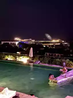 And... the rooftop pool was truly the best 🌅🏊♀️ Overlooking the airport, we enjoyed a luxurious time with the sunset and cocktails 🍹💕 It was truly an extraordinary experience ♡