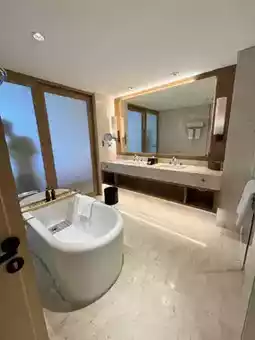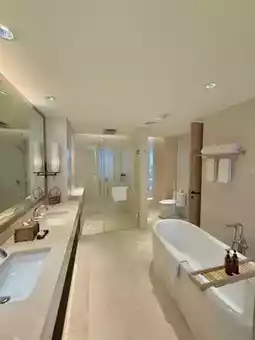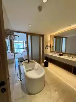 The room was spacious and impeccably clean! The fluffy bed and the elegant interior mixing Balinese tradition with modern style were just amazing 🛏️💫 The shower had strong water pressure, so it was very relaxing 🛁✨