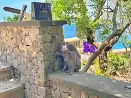 When traveling to Bali, many think you have to go to Ubud to see monkeys. However, there is a Hindu temple in the south where you can also see monkeys. This temple offers a cliff view of the Indian Ocean, creating a great atmosphere, and there are really many monkeys on the way up.