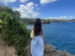 📍Broken Beach (Pasih Uug), Nusa Penida, Bali is a natural arch-shaped bay located on the west coast of Nusa Penida, where seawater flows in and out over a circular cave formation, creating a spectacular view. The circular structure, about 100 meters in diameter, is especially impressive.