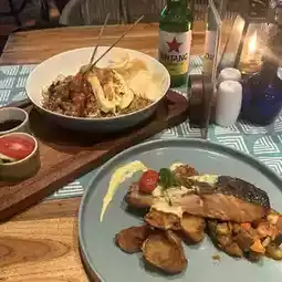 I found this place on Google Maps and went there, and the fried rice was absolutely delicious. The salmon steak was delicious, but they also gave me skewers with my fried rice, so delicious I ordered another to take away!