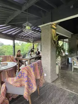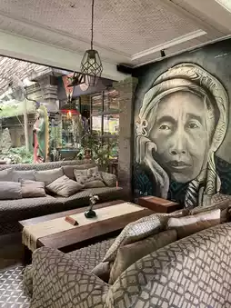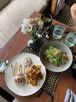 Zest Ubud has really changed my impression on vegan food! We walked in without making reservations and were told that we could enjoy the food for about an hour. I like how stylish the place is with many artistic murals. The food was beyond expectations! We had a pumpkin 🎃 waffle 🧇 with ice cream and it was so nice! I would have never thought vegan ice cream could be so smooth and creamy!
