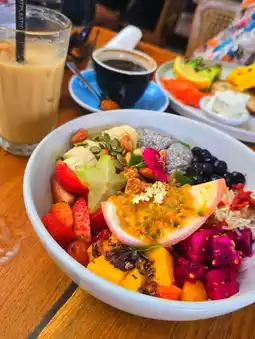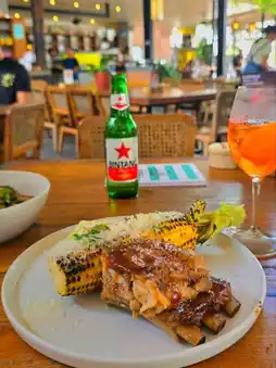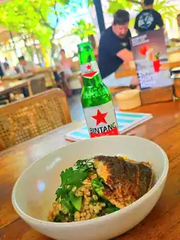 During our trip to Bali, we visited several quality restaurants, but Milk & Madu was one of them we visited twice. We learned about this restaurant in Canggu from a video online and decided to go there for lunch. The restaurant features a simple, open-plan design, creating a relaxed, comfortable, and informal dining environment. They serve mostly Western cuisine. We ordered scrambled eggs, avocado, and salmon with sour dough, and a Super Brekky Bowl with tropical fruit. While the dishes were simple, they felt healthy, and we had a great experience with the restaurant. On our last day, we decided to return for lunch. This time, we ordered grilled fish with salad and BBQ pork ribs. The fish was perfectly grilled, and the pork ribs were also delicious. With a cold beer, it was a relaxing experience, a perfect end to our trip to Bali.