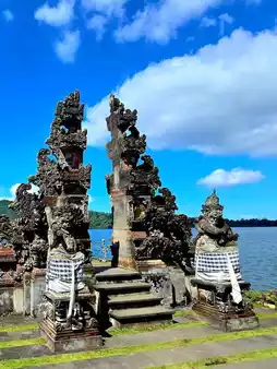 Experience Bali's religious culture and natural beauty at the Ulun Danu Beratan Temple, a captivating temple located on the shores of Lake Beratan in the northern highlands of Bali, about an hour's drive from Ubud. This temple is dedicated to the local deities of agriculture and water resources.