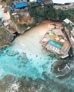 Secret Beach · Surfer’s Paradise Blue Point Beach, also known as Suluban Beach, is tucked beneath towering cliffs like a sapphire guarded by the sea. Layers of limestone intertwine with the crystal-clear blue water to create a unique scene. At low tide, you can explore hidden caves and small sandy beaches, giving a thrilling sense of adventure!