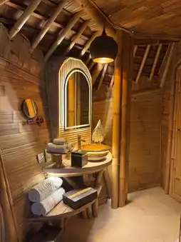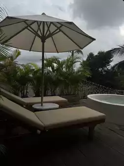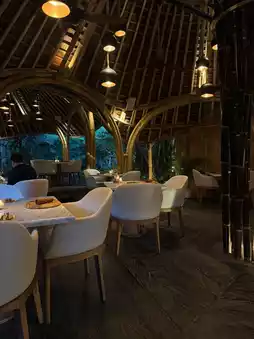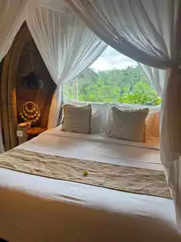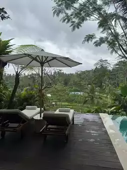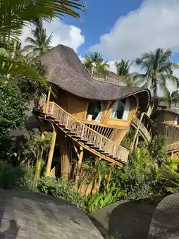 This was truly an unforgettable experience. Situated by the rice fields (all rooms offer a view of them), the resort feels like a private retreat! It's a stunning resort, unlike any other! Each room is a bamboo sky hut or villa, providing privacy and charm. The staff is incredibly friendly and attentive; when one of us fell ill, they offered great assistance! We stayed in a skytop villa, which felt magical! The hut, crafted from bamboo, even features a heated jacuzzi on the top! The dining was delightful, with both Indonesian and Western options. We enjoyed lunch and dinner at the hotel, where the staff's personal touch made a notable difference! I have a nut allergy, and all the restaurant staff were aware and took special care to ensure my meals were nut-free! The hotel also provides various activities; I participated in the lovely morning yoga session and also enjoyed a massage at their spa. We were welcomed with a refreshing drink before the massage, and it was an unparalleled experience. There's also a great gym, fully equipped with everything you need. We were met by the airport driver service, warmly greeted by an English-speaking driver who knew the region well, making for a pleasant ride! Overall, an unforgettable stay, and we wish we could have stayed longer! The hotel is beautifully designed, with every corner a sight to behold, and includes a terrace for admiring the rice fields!