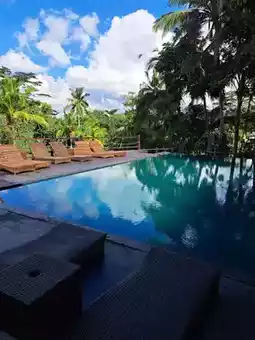 Manyi Village is located on the periphery of Ubud in a serene rural area amidst working rice paddies. We stayed in a 2-bedroom villa with a pool that was both spacious and clean. Some parts could use a bit of updating, but that's common in many places across the nation. The location is ideal for visiting nearby spots like the Monkey Forest, Gurung Kawi Temple, Swing Heaven, Padi Terraces, and the Royal Palace. The restaurant and pool are small yet sufficient, and the staff is friendly and attentive. Local Warungs, just a short walk away, are excellent, with our favorite being the Poke Bowl. I'd certainly visit again if I returned to Bali.