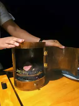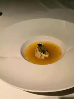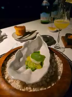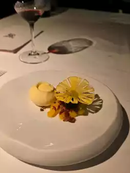 We opted for the nine-course Dinner Degustation tasting menu, meticulously paired by the sommelier with a selection of fine wines. The appetizer consisted of pomelo sorbet and crab meat. Following were snapper sashimi with caviar, lobster dumplings in clear broth, scallop bisque, steamed coral trout with black ink and shallot oil, and vanilla-smoked MB9+ Wagyu beef. Desserts included sago and coconut sorbet and aged black pineapple sorbet with ginger cream, and finally, a petit four dessert. Each dish was beautifully presented, incorporating local ingredients and creative cooking techniques, resulting in a vibrant and vibrant dining experience.