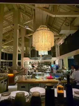 Kayuputi is the hotel's signature restaurant, serving up a sophisticated fusion of Asian and Western cuisine against the backdrop of the Indian Ocean and Nusa Dua Beach. We enjoyed an outdoor seating area, and despite being summer, the gentle breeze from the Indian Ocean brought a touch of coolness. The restaurant's spacious interior, with its bustling open kitchen, created a vibrant, warm, and inviting atmosphere.