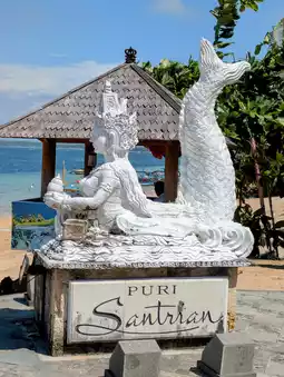 Just returned from a 10-night stay at the Puri Santrian. Wow, what a stunning hotel. The gardens and swimming pools are pristine. Our room (Club room) was quite spacious with a large four-poster bed, a big bathroom with a shower and a full-sized bath. The staff here are incredibly lovely, always friendly, smiling, and they work diligently to keep everything running smoothly. The breakfast was excellent, offering a wide variety of food from eggs and bacon to dim sum, fresh fruit, cereal, cheese, cake, and toast. The gardens are so beautiful, it was very tempting just to remain within the hotel grounds! There’s a beautiful dining area along the sea front. A big shout out to Eka, who greeted us every morning with her sunny smile.